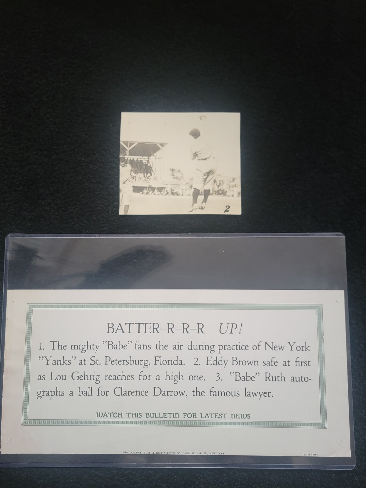 2. 1928 LOU GEHRIG EDDY BROWN SAFE AT FIRST AS LOU GEHRIG REACHES FOR A HIGH ONE (AUTHENTIC) TYPE 1