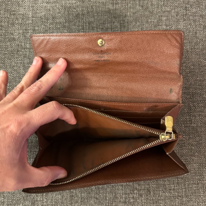 - Coin residue in zippered coin area